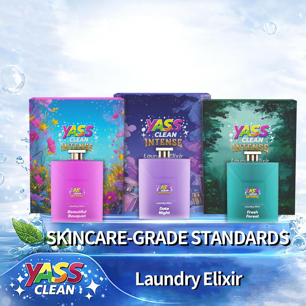 Upgrade your laundry game with YASS CLEAN INTENSE. It doesn't just mask odors—it infuses every fiber with a luxury elixir.